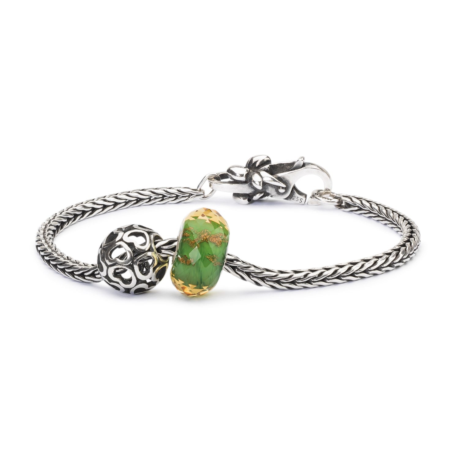 The Sterling silver bead Blanket of Love is designed by Danish silversmith Jytte Kløve. It also comes in a 18 karat gold version. The bead is a part of the Stardust collection from 2018. It is crafted by hand by the cire perdu method. A 3,000 thousand year old technique. The bead portrays many small hearts that are connected.